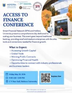 SMART FINANCIAL NETWORK (SFN) AND HOFSTRA UNIVERSITY PRESENT A COMPREHENSIVE DAY DEDICATED TO SCALING YOUR BUSINESS. THIS EVENT GOES BEYOND TRADITIONAL BANKING, PROVIDING SMALL AND MEDIUM ENTERPRISES WITH THE ELITE TOOLS AND CONNECTIONS NEEDED FOR FINANCIAL GROWTH.